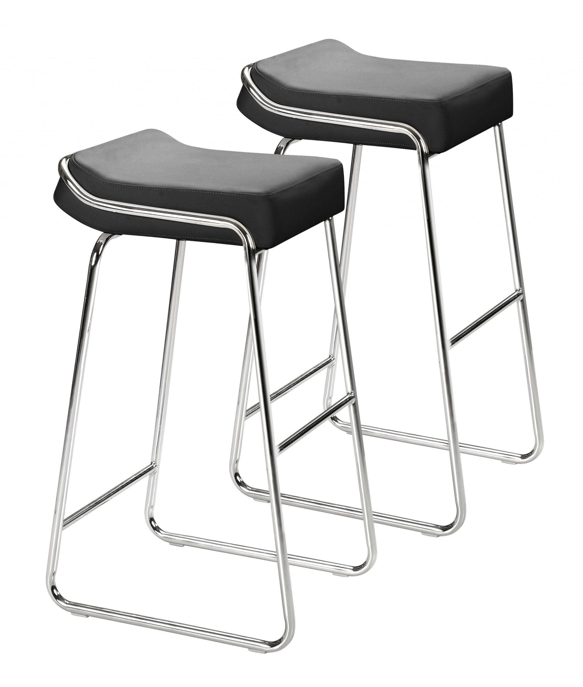 Set Of Two 33" Black Faux Leather And Chrome Backless Bar Height Chairs