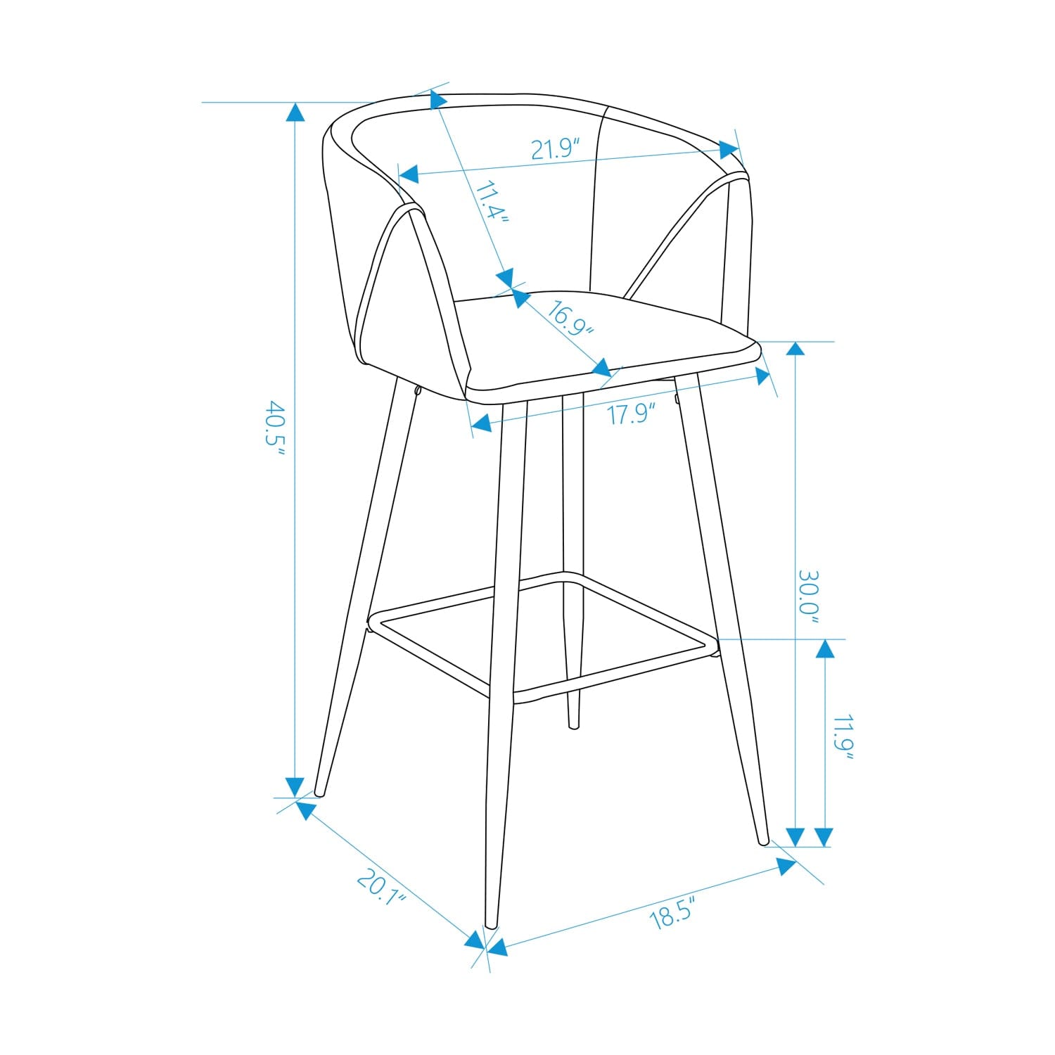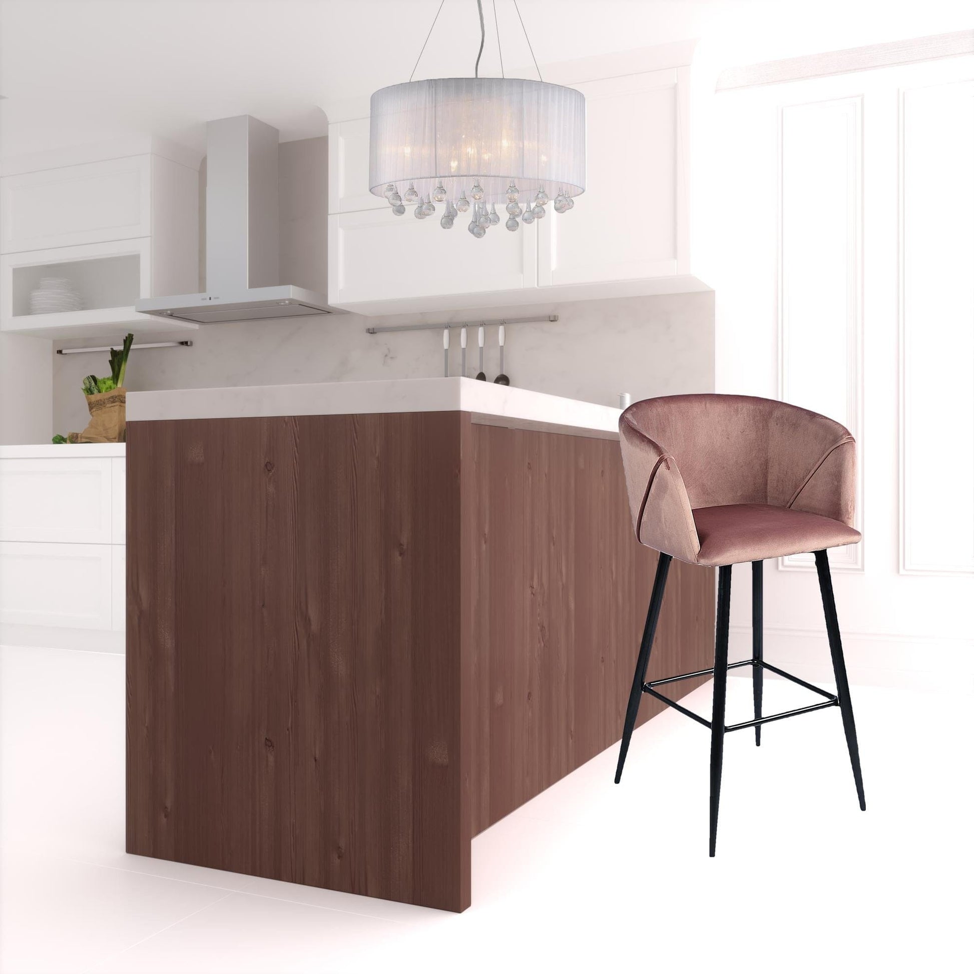 With this set of two 41" rose velvet and steel low back bar height chairs you can add design and extra seating to your space. The base of this stool is made from steel in a black color that is a nice contrast to the rose velvet seat. A low back mixed with a square shaped seat design makes this chair both comfortable and fashionable. A great seating option, this stool will bring a unique look to any room. 40.5" H x 21.9" W x 20.1" D