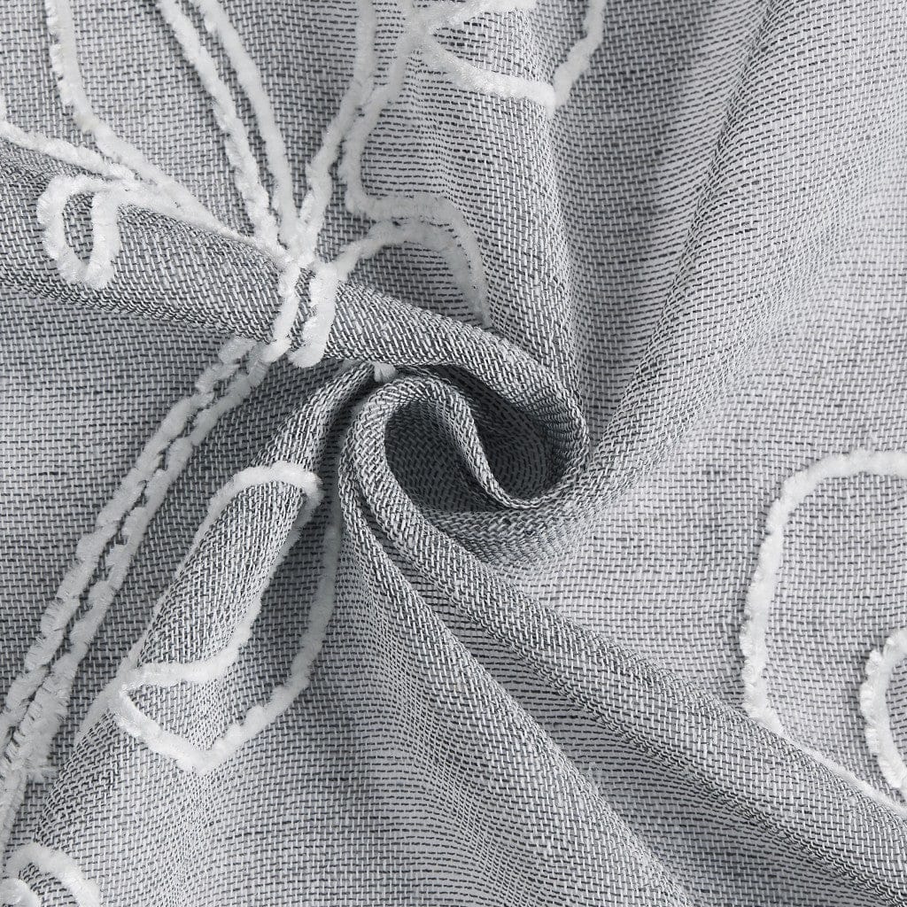 Let the soft light peak into your living room or bedroom space with this eye-soothing Set of 2 96” Silver Boho Embroidered Window Panels. The semi-sheer silver base is beautifully embroidered in white chenille floral patterns to add texture to the piece with a bohemian flair. This pair of window panels will perfectly cover a standard window and to the beauty of your home without being too loud. Crafted from top-notch polyester fabric, this curtains are soft, durable, and light filtering that will brighten up your space with soft light for a peaceful ambiance. The clean silver grommets make installation a breeze no matter wherever you want to place it. These curtains are easy to clean; all you need to do is just wash it in machine cold water and hang dry to retain the pristine look and shape. The subtlety of the palette and detailing of the patterns make this set of window curtain panels a perfect décor for any modern or bohemian home. 96” x 76"