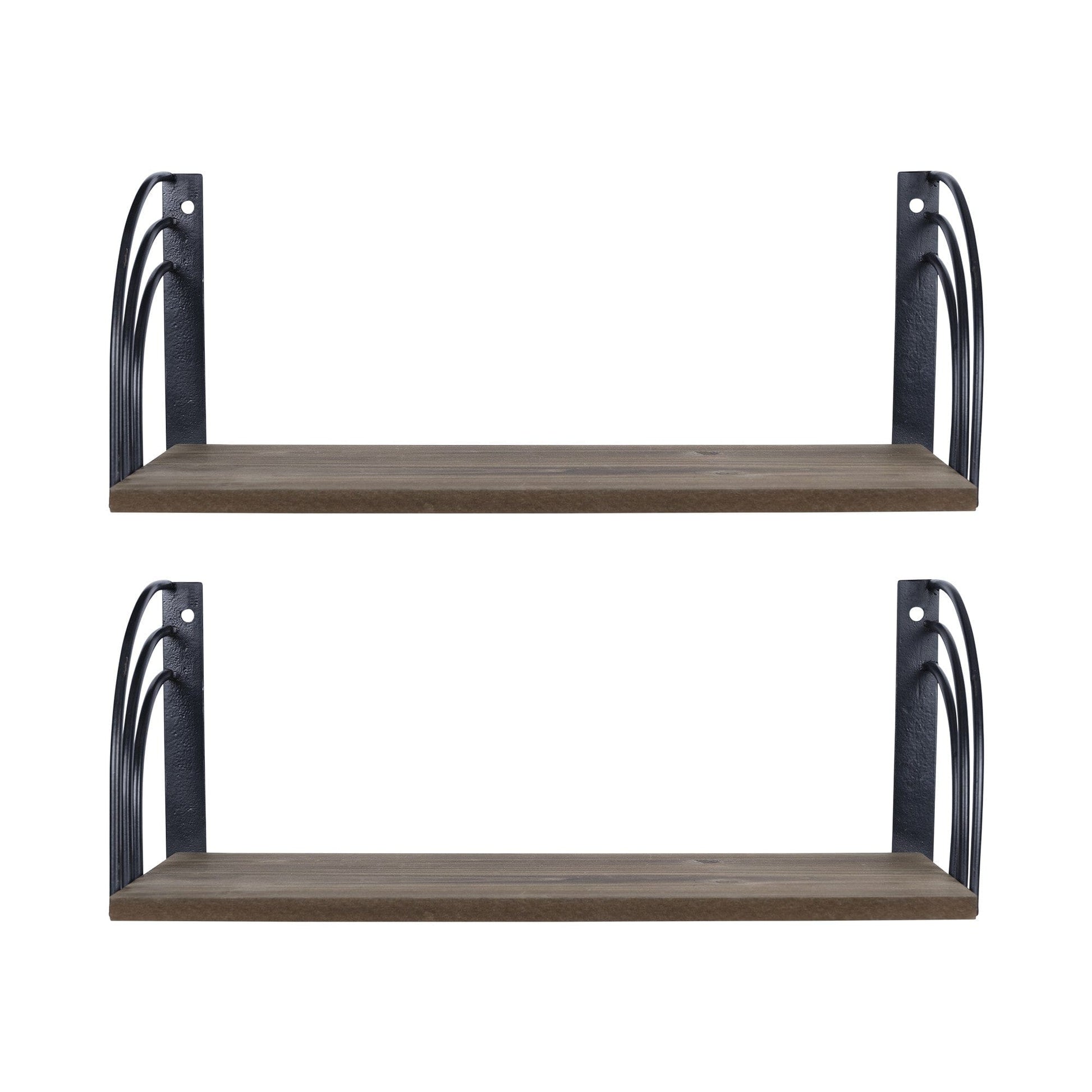 Add a touch of industrial elegance with this Set of Two Arched Wooden Floating Wall Shelves. This set comes with one big shelf and one small shelf, both made from a mix of wood and metal which makes them sturdy yet light enough to hang securely on your walls. The bases of the shelves are made from wood and have a dark brown varnish on top. On either side of the shelves, there are arched metal handles. The handles are made of three different metal arches all attached to the metal bracket at the back. The simple yet unique style of these shelves are not only great for elevating a simple wall in your home but also provide a great storage solution for the smaller items you may have. You can use these shelves anywhere in your home owing to their neutral colors. 7" H x 23.6" W x 8" D