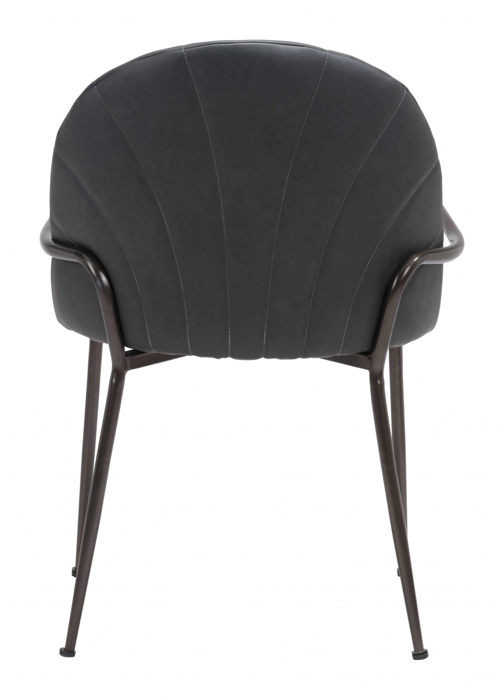 The perfect chairs for the stylish dining room…the Dark Gray Faux Leather Arch Dining Chairs. These gorgeous chairs have a semi-circle arched back with scallop stitching tufts across the backrest and a solid seat all finished in a soft vinyl faux leather. The dark gray color against the dark metal base creates a bold look that can be an accent in the living room office conference room or bedroom. 30.3" x 21.3" x 21.7" each. Set of 2.