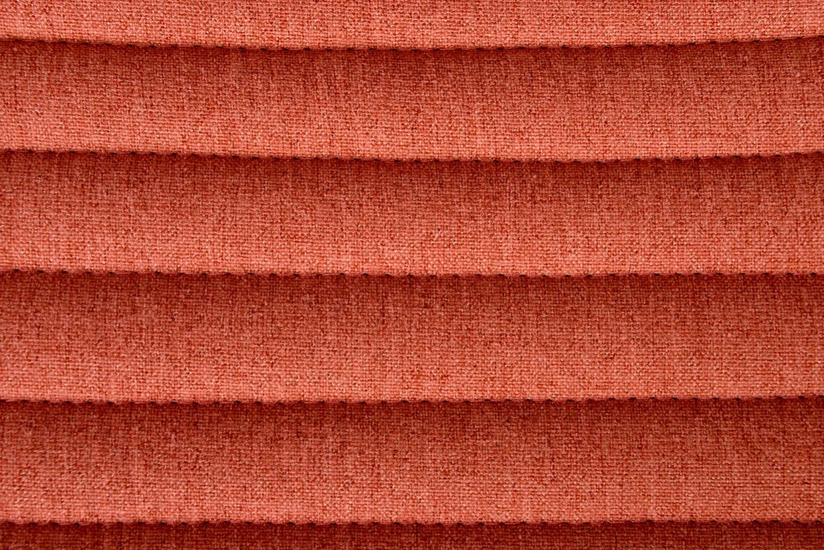 Functional and super versatile, the Salmon Gold Fabric Dining Chair Set of 2 is a gorgeous minimalistic chair that will add value and style to your kitchen or dining room. It features a metal chrome-plated frame in a rich gold color and square seat and backrest upholstered in eye-catching salmon stain-resistant fabric. The upholstery is finished with horizontal channel stitching for added detail. The chair's legs come with plastic foot pads that protect your floors from scratches. 30" H x 19" W x 31" D