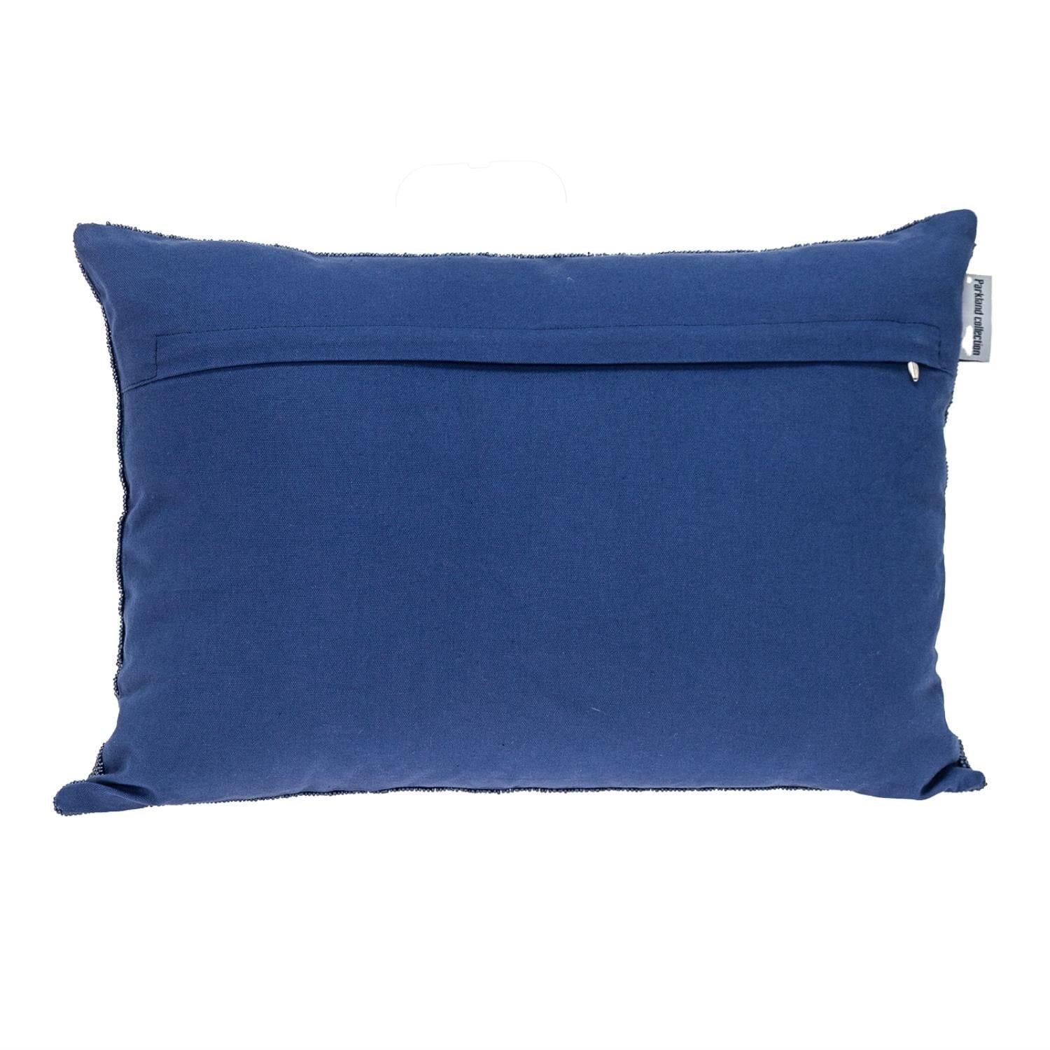 Spruce up your pillowscape design by adding a touch of glam with the Shimmering Blue Beaded Luxury Throw Pillow. Bold and jazzy this monochromatic exquisite pillow doesn't shy away easily from the limelight. Meticulously woven the beaded stripe design engulfs the entire pillow adding a sense of heavenly comfort combined with textured sophistication. On the reverse is an all cotton solid color cloth finish which conceals a hidden zipper, a clever design for easy maintenance. Rejuvenate your living space by clubbing this royal throw pillow with your neutral sofa or bed for a hint of shimmer and shine. 14" x 20" x 4"