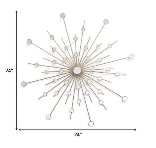 Decorate the wall of your room with this stunning mirror burst wall decor. Coming in gorgeous cosmic design, this burst will definitely make your beloved room sparkle. Creatively crafted out of metal and glass, our bursts are hand-painted in shimmering gold that will lighten up any space. - Modern style 60% metal, 40% glass Vertical hanging orientation One keyhole hanging method Wipe clean with damp cloth - Item is handmade and painted by skilled artisans. It measures 24" X 0.5" X 24".