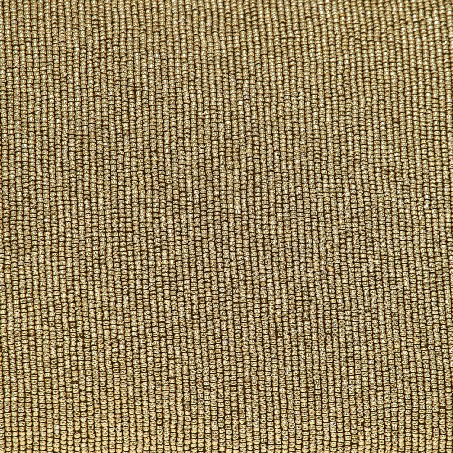 Spruce up your pillowscape design by adding a touch of glam with the Shimmering Metallic Gold Beaded Luxury Throw Pillow. Bold and jazzy this monochromatic exquisite pillow doesn't shy away easily from the limelight. Meticulously woven the beaded stripe design engulfs the entire pillow adding a sense of heavenly comfort combined with textured sophistication. On the reverse is an all cotton solid color cloth finish which conceals a hidden zipper, a clever design for easy maintenance. Rejuvenate your living space by clubbing this royal throw pillow with your neutral sofa or bed for a hint of shimmer and shine. 14" x 20" x 4"