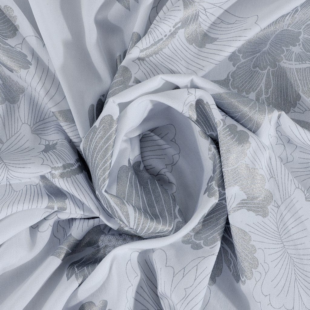 The nature-inspired floral prints of this Silver and White Floral Printed Shower Curtain will give your bathroom a refreshing natural touch with a modern flair. With shiny silver floral prints flanked over a white base, this curtain is sure to be the focal point in your bathroom space. This shower curtain is constructed with 100% cotton material which is highly durable to serve you for a long time and is very easy to wash by hand or machine. Pairing it with a vinyl lining will add to its functionality and keep water off the bathroom floor while reducing mold and mildew. You can choose your preferred style of shower curtain hooks, clips, or rings to hang this eye-catching curtain on your shower rod. This shower curtain will not only provide privacy for a relaxing shower but will also add visual interest to the bathroom space. 70” x 72”