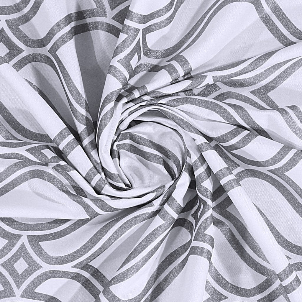 The sophisticated hues of this Silver and White Printed Lattice Shower Curtain will instill an understated elegance to your bathroom space with a timeless appeal. Standing out in fashion and function, this curtain is beautifully crafted with 100% cotton fabric which makes this piece super durable for everyday use while being very easy to clean and maintain. The aesthetically pleasing white backdrop is delicately detailed with printed lattice patterns in silver for an alluring contrast that transforms the look of any modern or traditional bathroom setting. An ideal accent for a curved or stall rod in the shower area, this curtain comes with reinforced buttonholes to be hung with shower curtain clips, hooks, or rings. It’s best to match it with a waterproof liner to keep water from getting out of the shower area keeping the floors dry. Besides the visual feats, this curtain offers a convenient bathroom essential to provide privacy as you indulge in a calm and comforting shower experience. 70” x 72”
