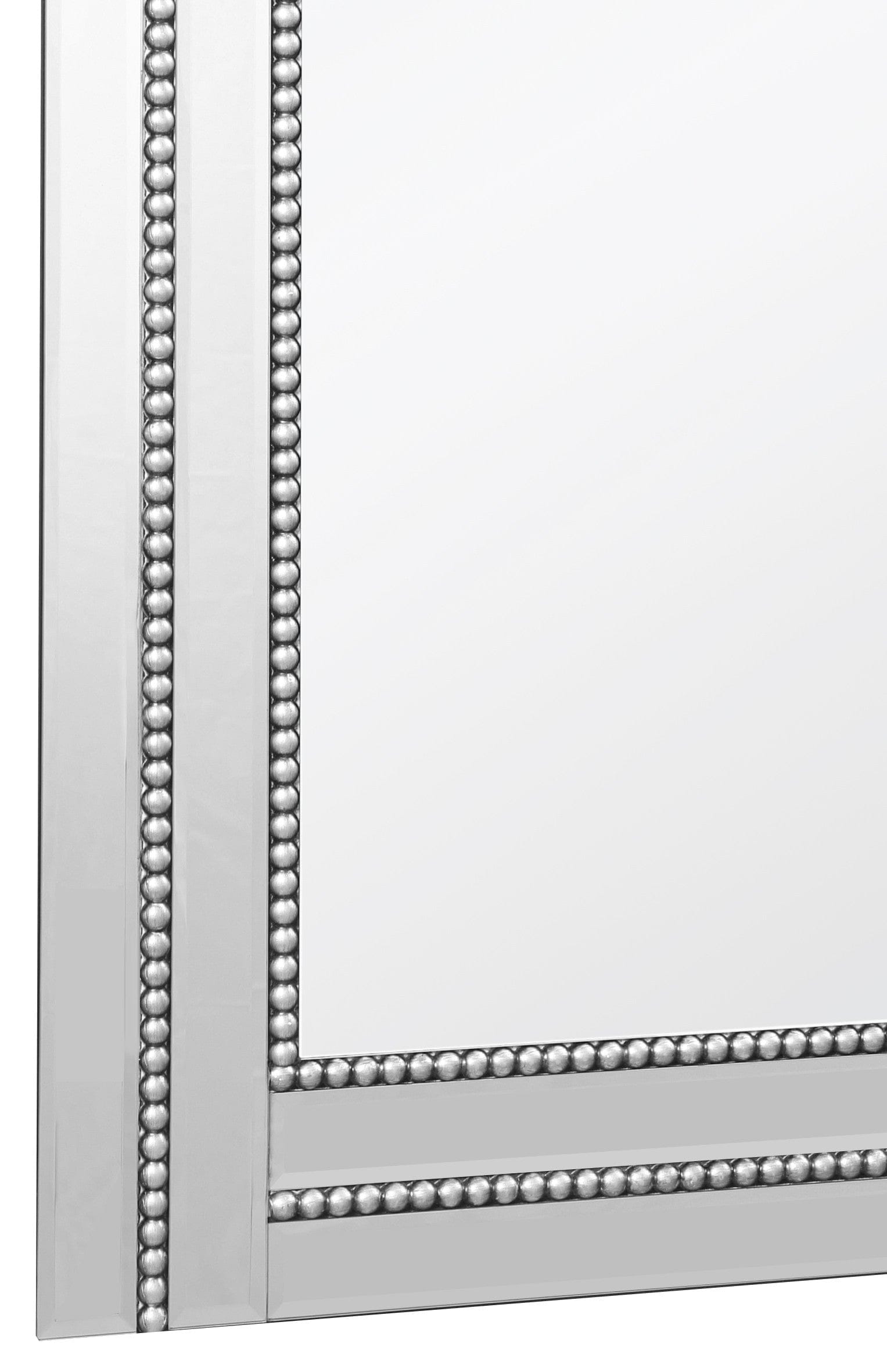 The Silver Beaded Frame Mirror is a cleverly designed mirror that contains a beaded frame to add a certain sense of sophistication and class to this piece of mirrored wall art. This traditional rectangular mirror will blend with your industrial loft or country cottage theme will adding contemporary flair to any home decor in between. This mirror has a high quality silver backing. Ready to hang either vertically or horizontally with pre-attached hanging mounts. This mirror is unique and different and will look great in your bedroom. 36" x 24" x 0.5"
