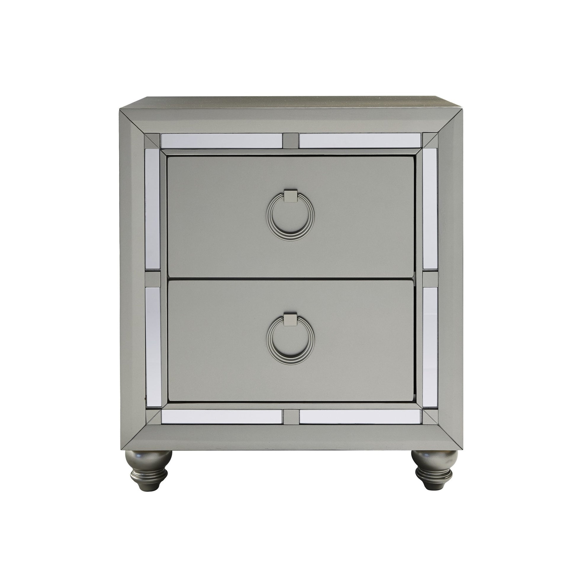 Silver Champagne Tone Nightstand With 2 Drawer Mirror Trim Accent