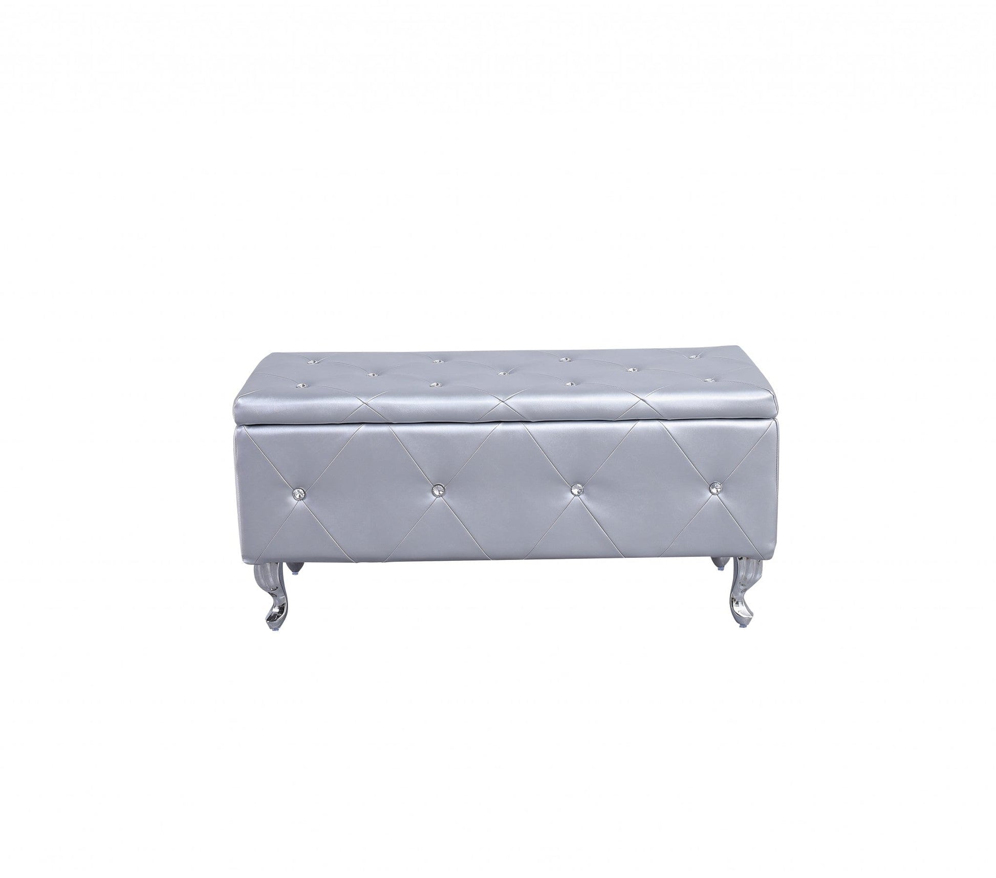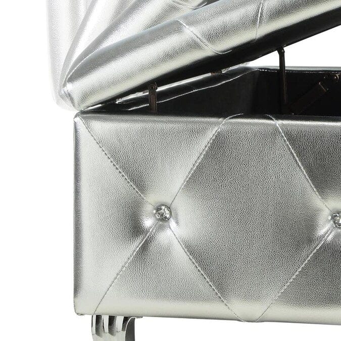 Silver Tufted Hard Wood Storage Bench