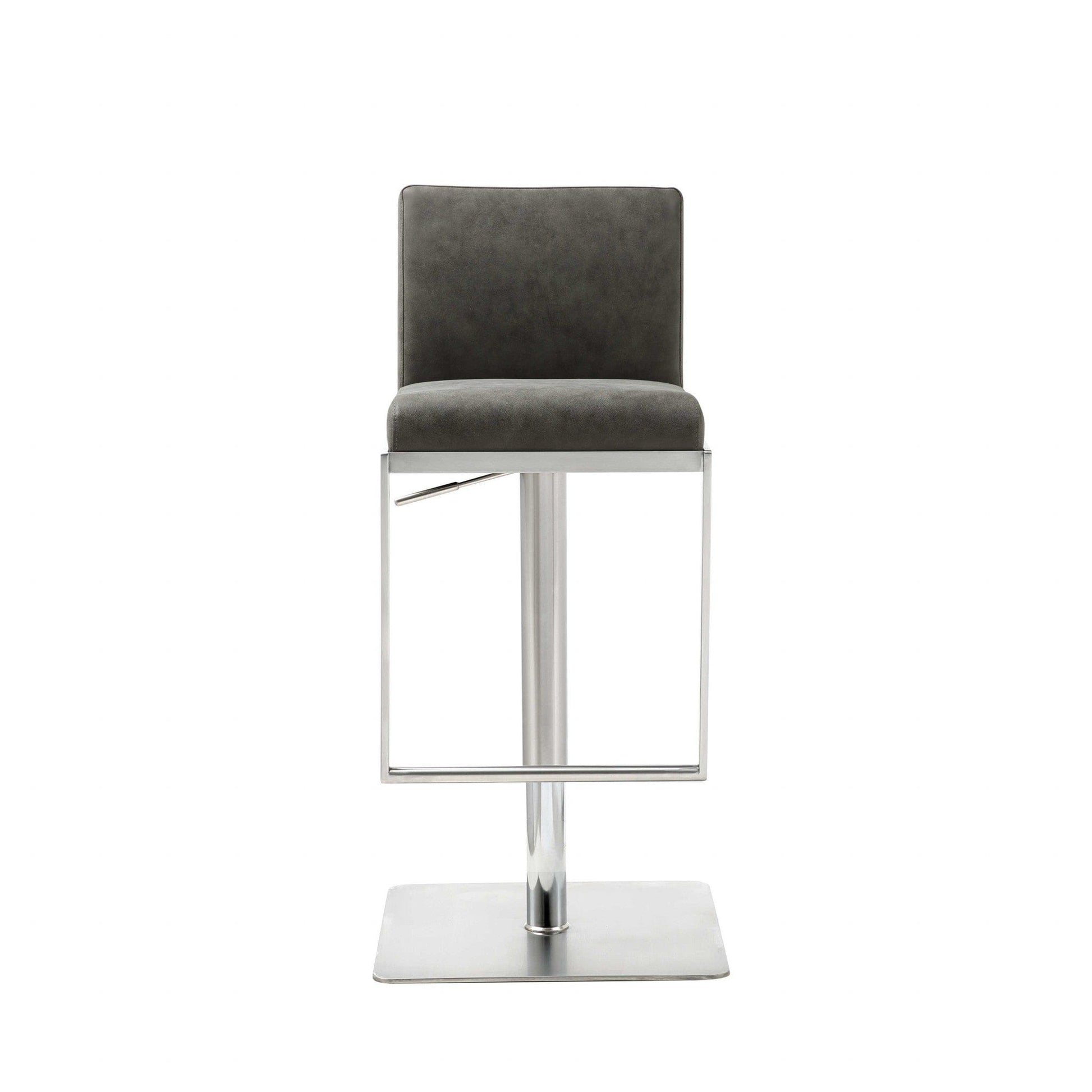 Sleek Dark Gray Faux Leather Adjustable Bar Stool