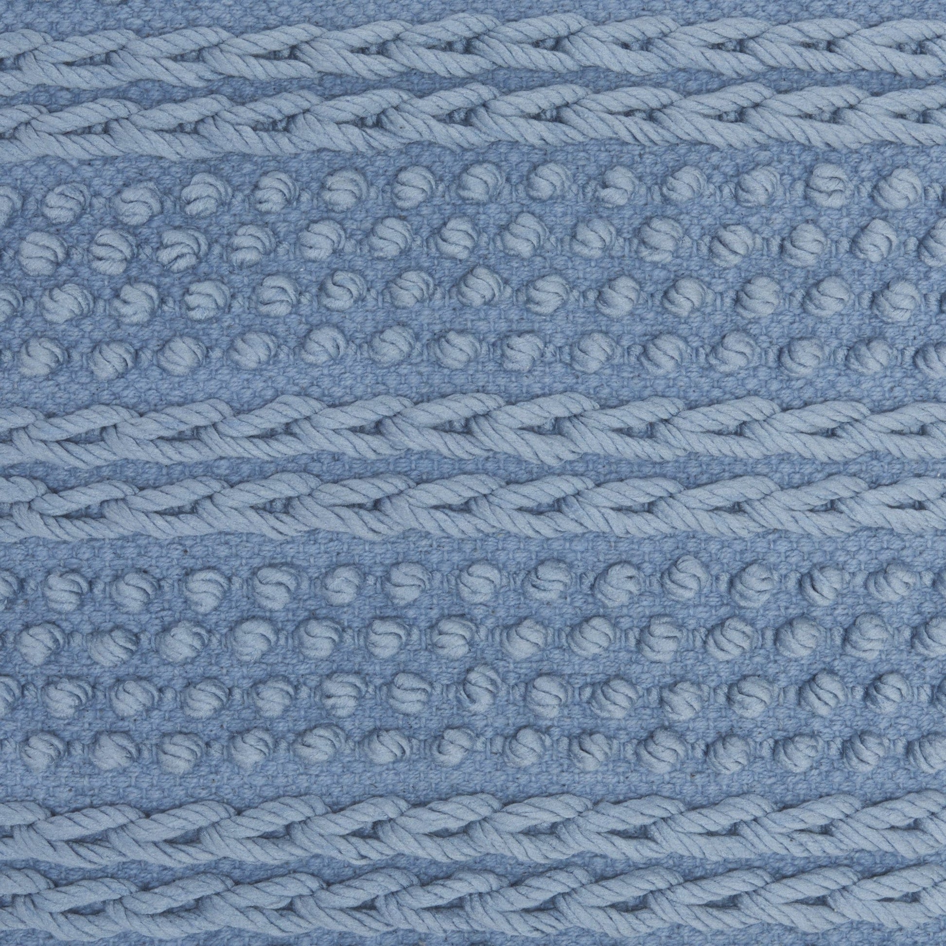 Set a calm and relaxing tone into your living space with this Ocean Blue Textured Dots and Stripes Throw Pillow that is bound to upgrade the aesthetics of any casual or contemporary setting. Featuring a single hued color palette, this pillow is designed in a classic textural pattern with braided stripes and raised pom-pom to create a fun yet luxurious appeal to the entire piece. Carefully crafted with 60% cotton and 40% polyester, this accent pillow is not only durable and easy to clean but also feels super soft on the touch. This classy and cozy throw pillow will serve as a great ornate accent for your bed, sofa, or chair while harmonizing with the modern decors of your interior. The playful texture is the base for the beautifully raised dots and stripes pattern on the front and has solid flat color on the back. 18” x 18” x 5”