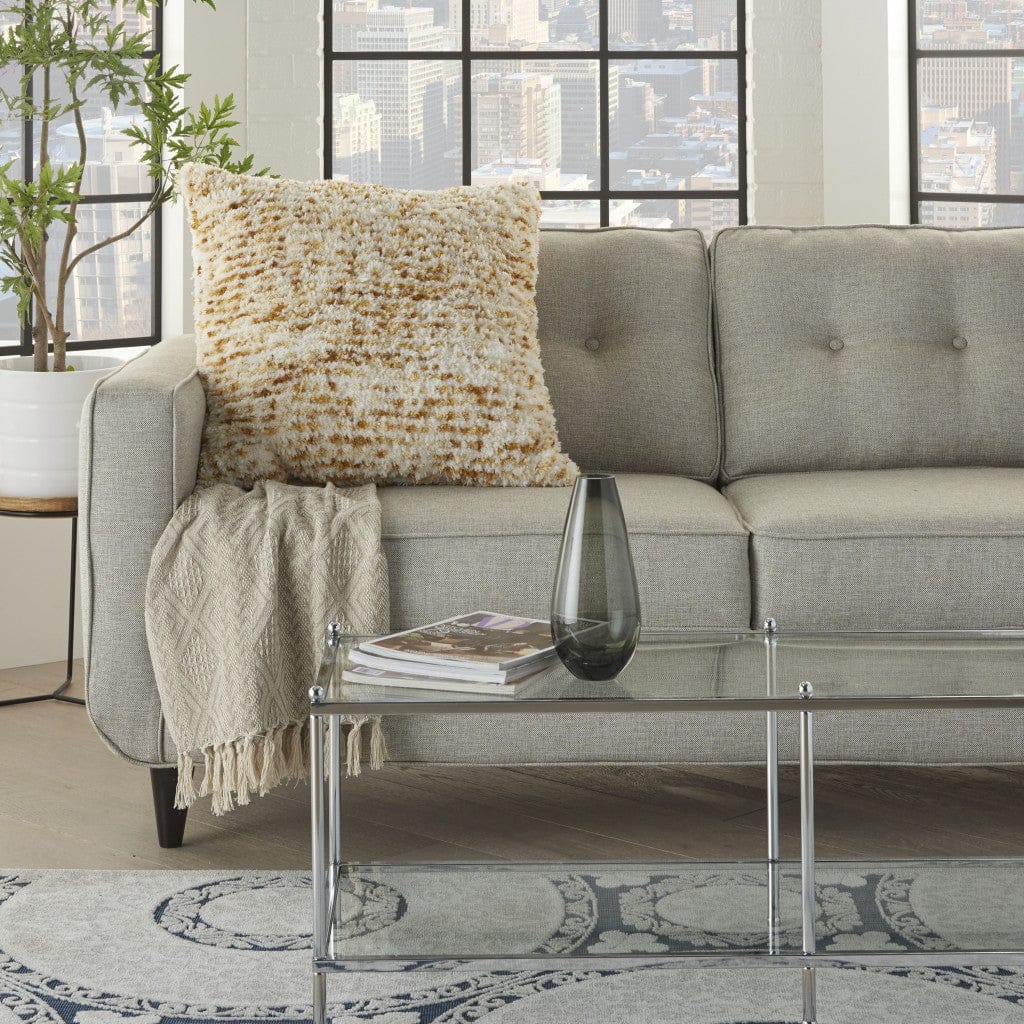 Inspired by contemporary art and combined with unmatched comfort, this Soft Shaggy Yellow and White Spotted Throw Pillow will be the perfect addition to any seating space in your home. The luxuriously soft shaggy fabric that covers the polyester filling has a dotted pattern on it with the dots varied in size and concentration. The yellow and white colorway enables you to use this throw pillow with any colors or interior styles your already have Use it on your bed, your couch, or even you favorite chair. 5" H x 24" W x 24" D