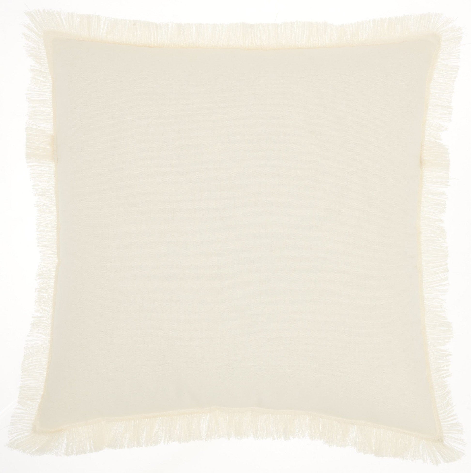 Be it a minimalistic aesthetic or a creative contemporary look, this Solid Ivory Contemporary Throw Pillow will fit in perfectly and accentuate your overall look seamlessly. The solid ivory color meshes perfectly with any dark or light shades for a comforting yet bold look. The exuberant look continues throughout with soft-touch fringes on all sides giving an elegant flair to the contemporary style. Made with 100% cotton, the throw pillow can withstand wear and tear for years. This piece will act as the strong bridge between your innovative style and the perfect layer of comfort that every household needs. Solid pillows are also great for mix and match and blend with virtually any style. 18” x 18” x 5”