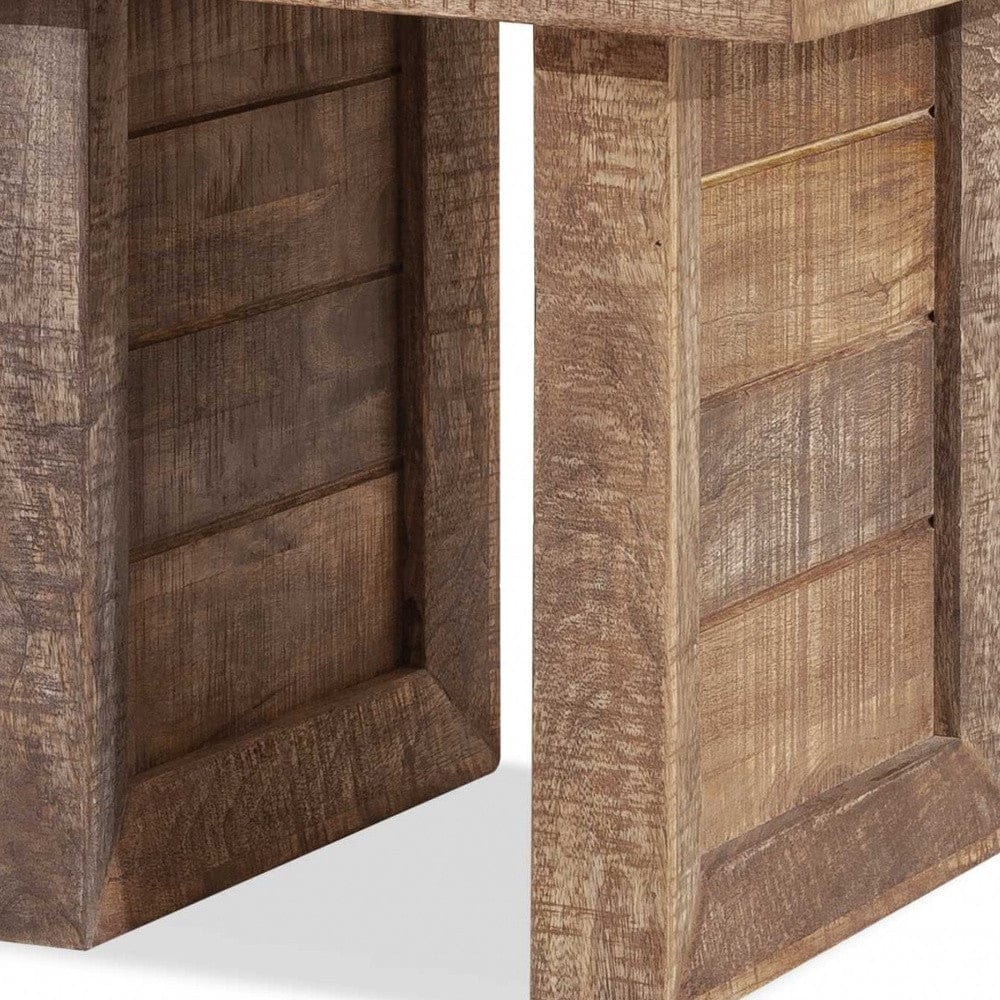 Delivering down the earth design and beauty, this Solid Wood Butcher Block Style End or Side Table is a great find. Chunky and solid the natural wood makes a distinct and delightful accent for your living room, bedroom, or loung area. Ideal next to the sofa or in an entrance way, this end or side table will be a winner for sure. Excellent craftsmanship is paramount in this piece as it is made from high quality solid natural mango wood that is simple and straightforward. 19.7" x 19.7" x 19.7".