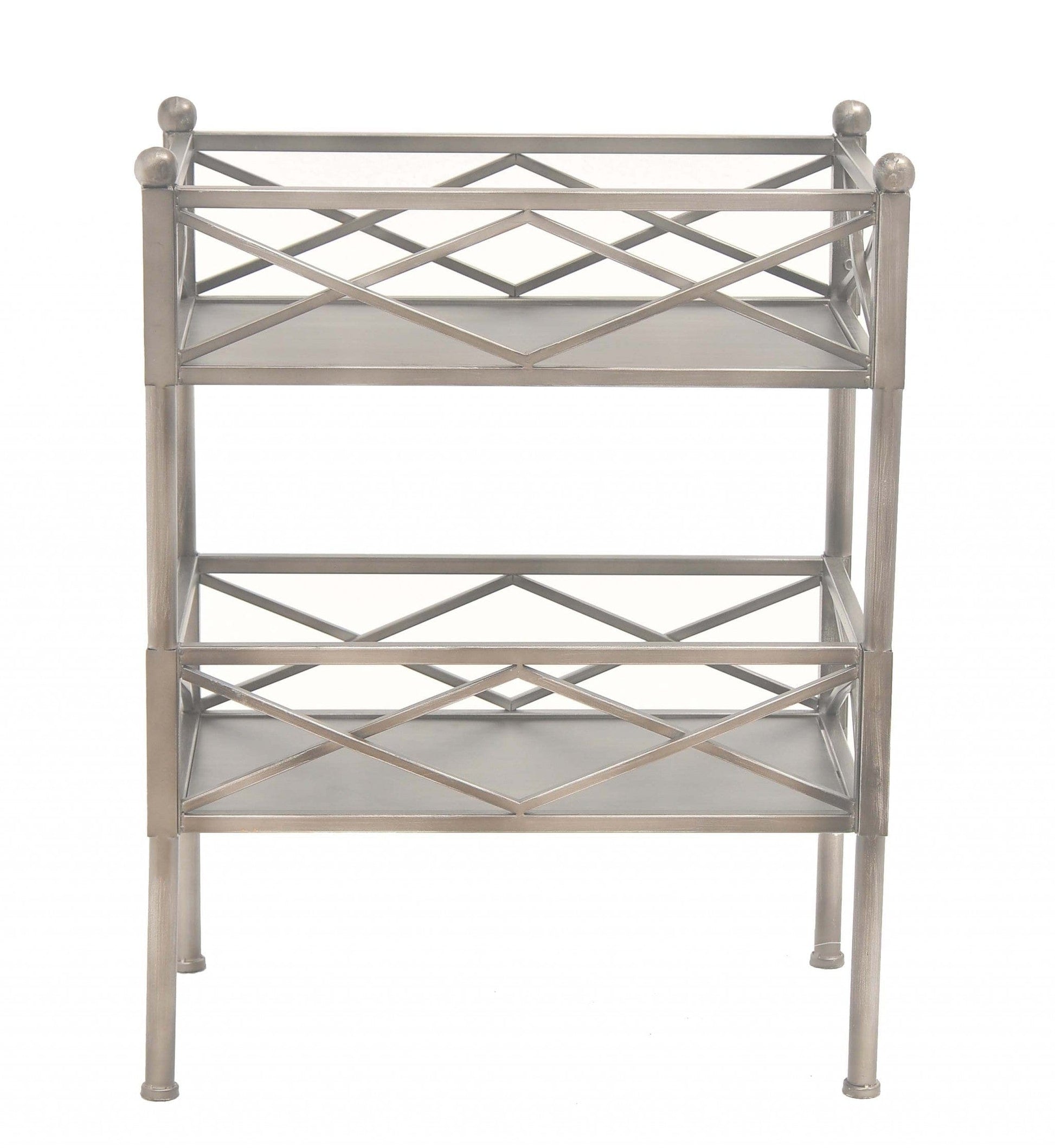 Stylish Brushed Silver 2 Shelf Serving Cart Or Bookcase