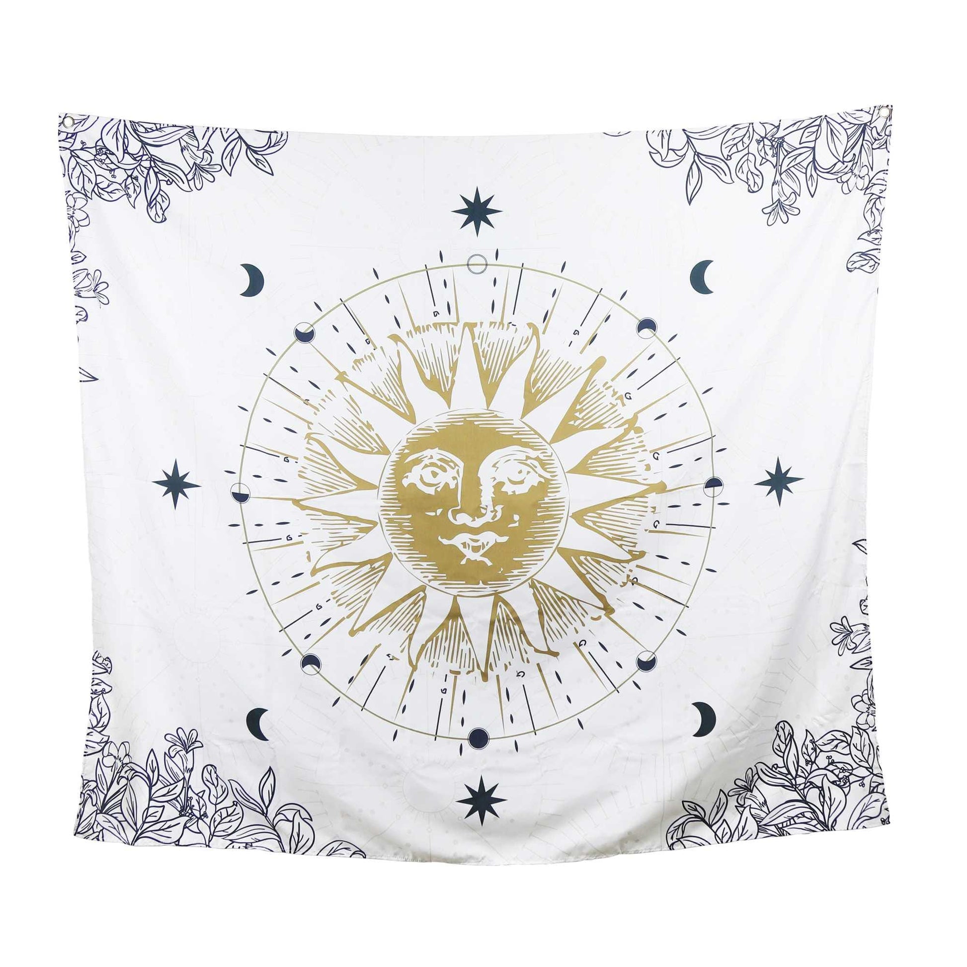 A decorative tapestry that is as cool as this one will breathe new life to your indoor spaces. This black and white piece with the golden sun in the middle, includes stars and all of the celestial beauty that has become so important to bohemian chic decor. This wall hanging makes you feel instantly calmer and more in tune with the universe. This tapestry piece is made of 100% polyester and measures 57.50" x 0.03" x 50" inch.