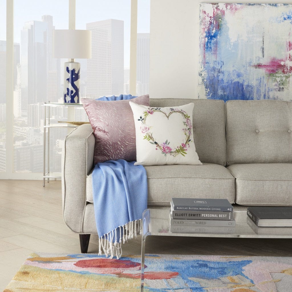 Elevate the aesthetics of your living space with this Sweet Heart Wreath Throw Pillow that will create a serene and balanced composition for a charming ensemble. Flaunting a heart-shaped multicolored floral wreath over a daisy white base to create a beautiful visual harmony. This pillow will enhance your experience even more with its 100% duck cotton upholstery that feels soft and sumptuous on the touch while ensuring its durability to withstand snagging and tearing for many years. Express your inclination towards nature-inspired floral motifs with this graceful and sweet throw pillow that will breathe in life to any dull living room or seating space. 18” x 18” x 5”