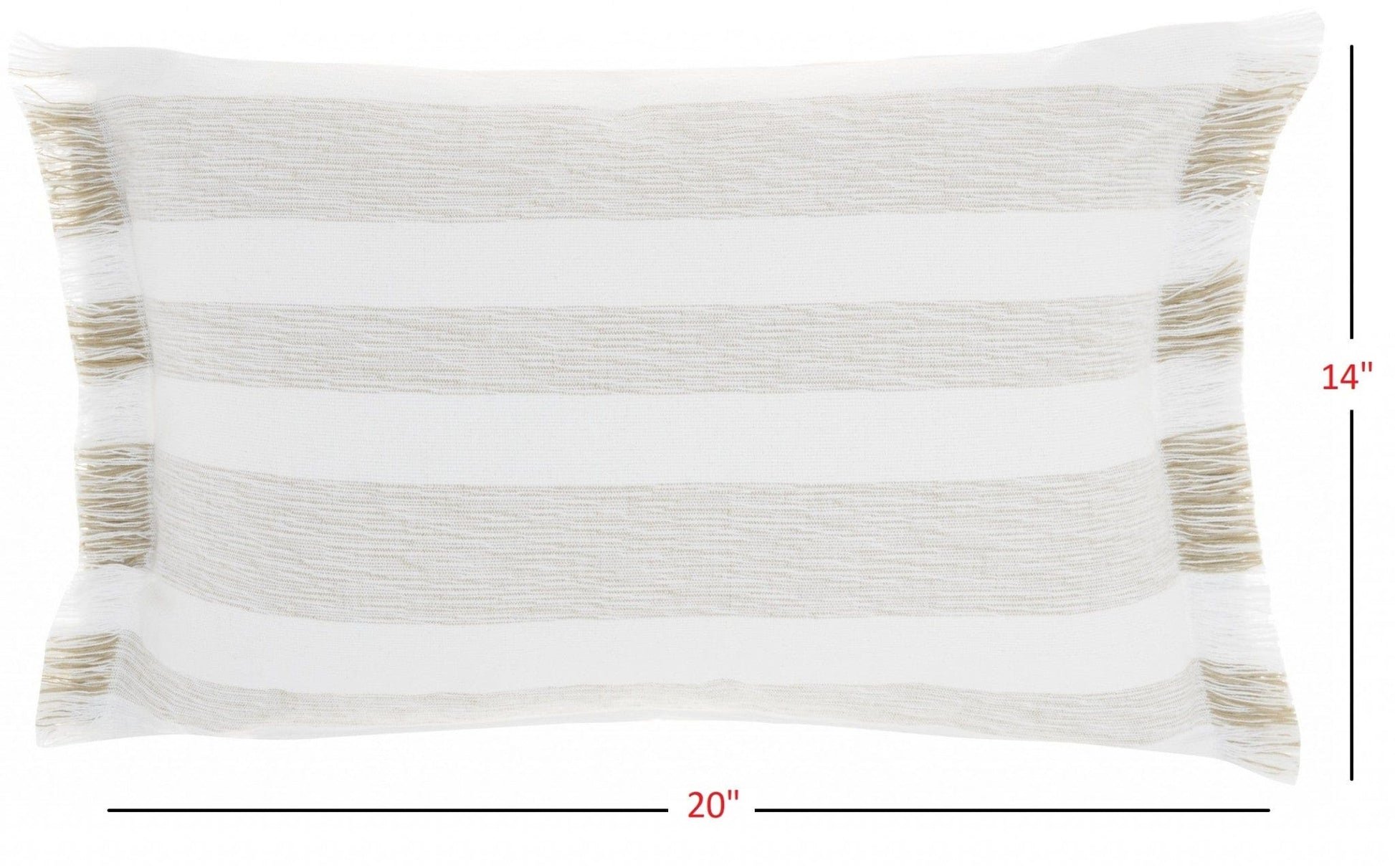 Induce a sense of warmth and coziness into your place with this Taupe and White Soft Stripes Throw Pillow that flaunts a relaxed and laid-back feel in its simplicity. Showcasing clean-lined alternating stripes in pastel hues of taupe and creamy white in the middle with ornamental fringes on the edges gives off a farmhouse appeal. Made to stand the test of time, this 100% cotton-made pillow is super durable, easy to clean, and more breathable. Pair this soft and sumptuous throw pillow with neutral shades or vibrant hues for a blissful harmony or a striking contrast. 14” x 20”x 5"
