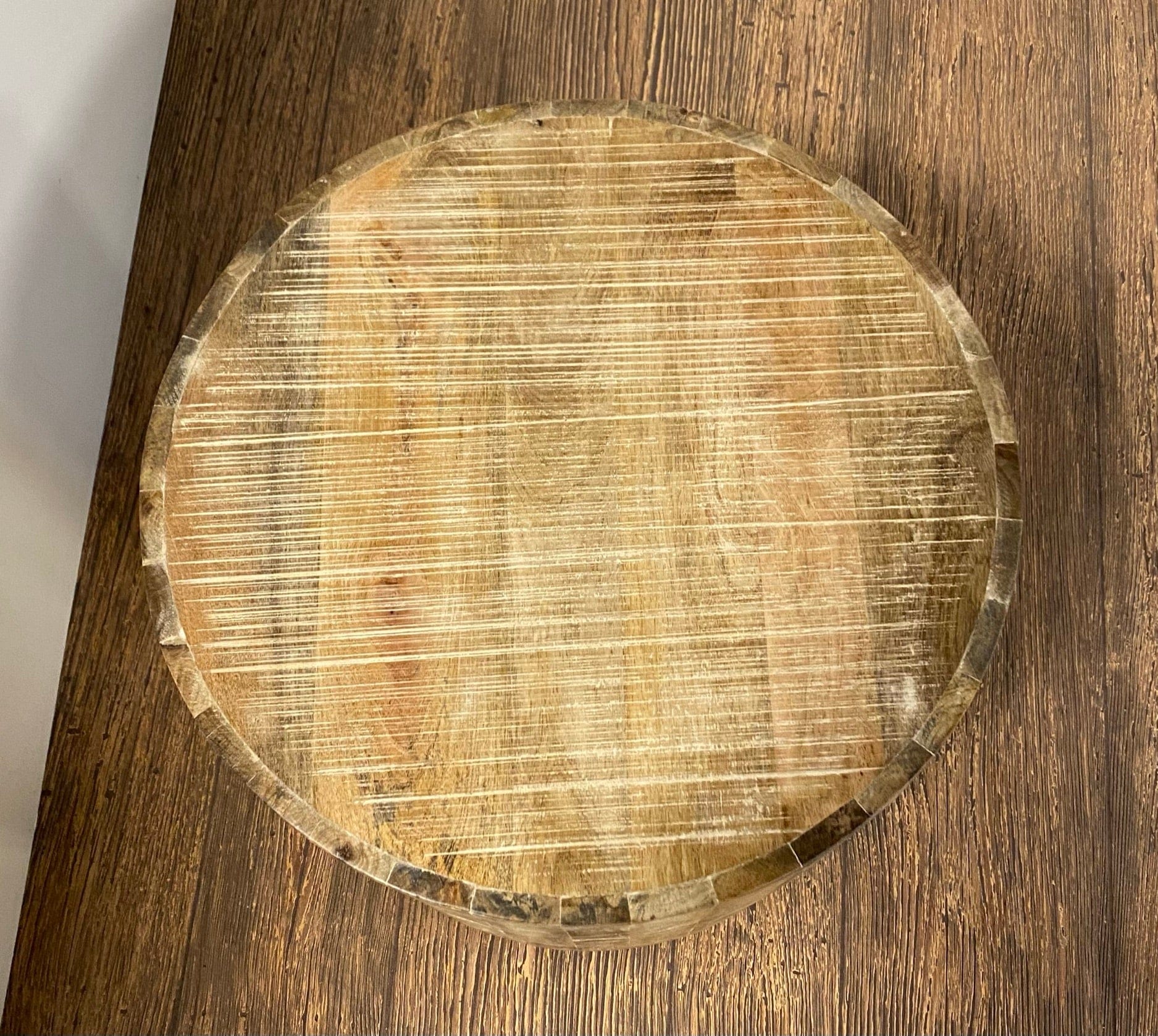 Unique in design, this Updated Rustic Round Stump End / Side Table brings modern farmhouse to life. A great accent for your living space, this round end table is made of mango wood and feautures an eye-catching drum shape that is trimmed in narrow planks. The rustic and highly distresed finish gives this piece a great look and makes it casual and inviting for your room. 20"" H x 22"" W x 22"" D