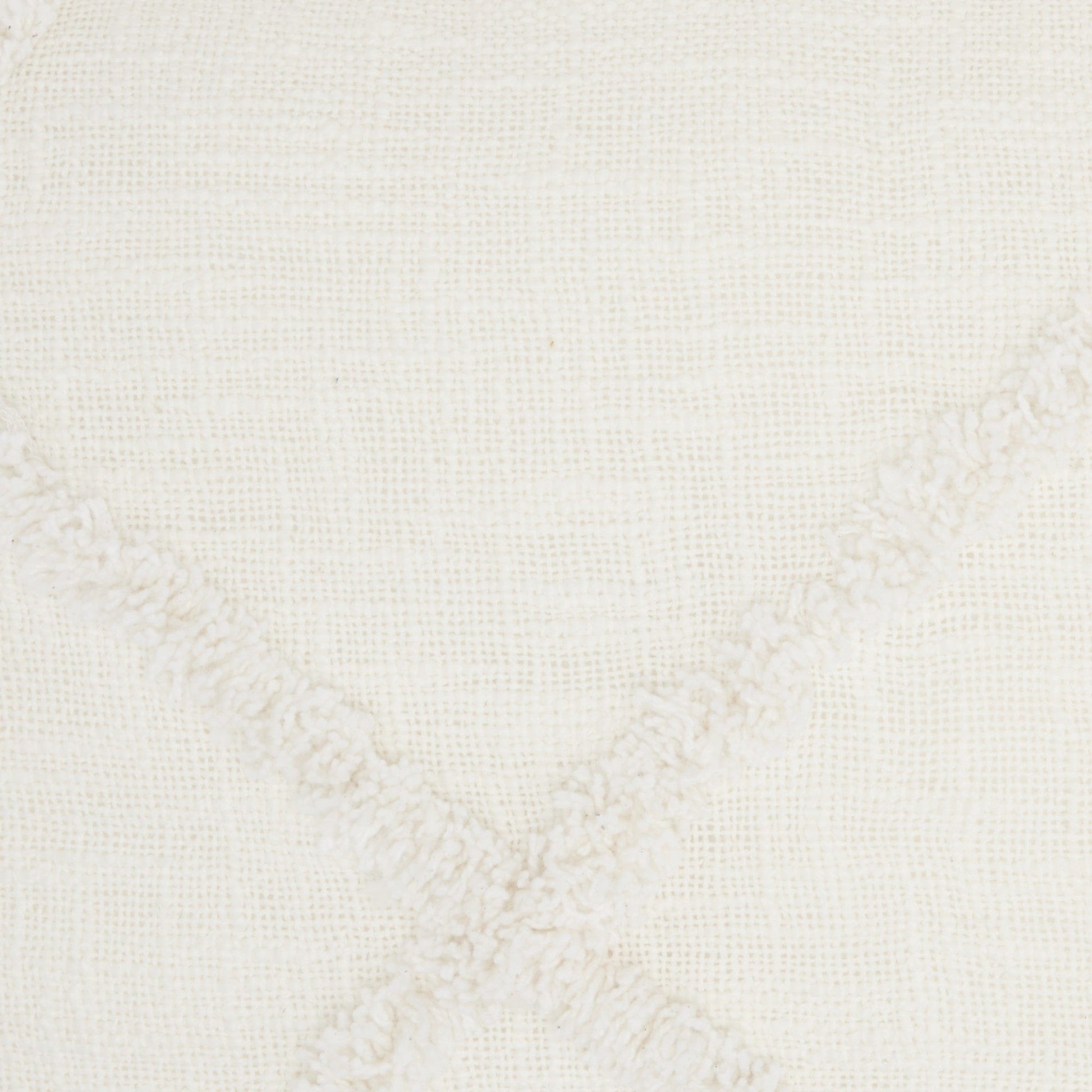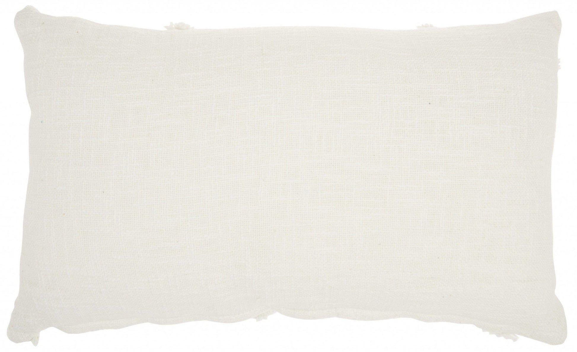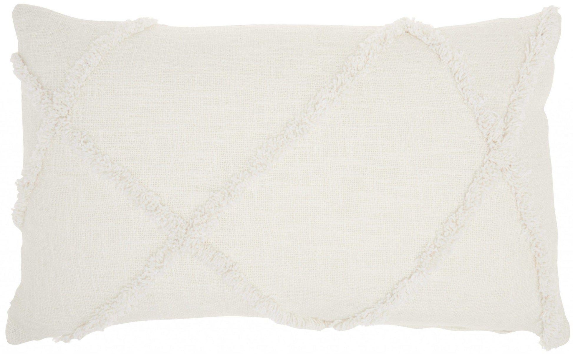 With this White Shaggy Detail Lumbar Pillow you can add the perfect mix of design and comfort to your home. This pillow has a rectangular shape and is covered in a textured white colored fabric. On top of this fabric there are shaggy thread lines in a geometric pattern that are in the same white color. The same colored details add a touch of depth and dimension to the overall look of this pillow and will elevate any seating space in your home. You can use this pillow to style up your bed, your couch, or any other seating area in your home and it will work with any existing colors or decor styles you may already have. 5" H x 14" W x 24" D