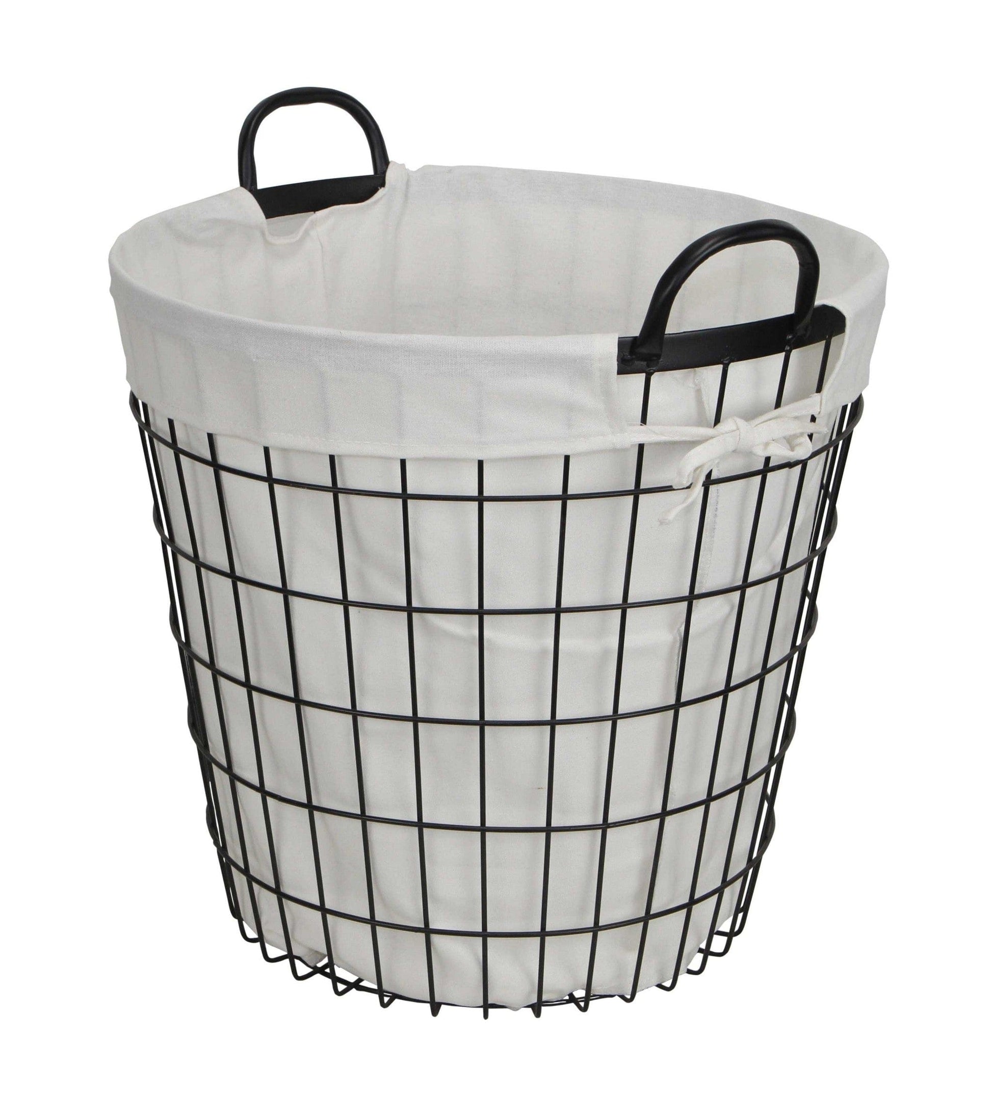 White Fabric Lined Metal Laundry Type Basket With Handle