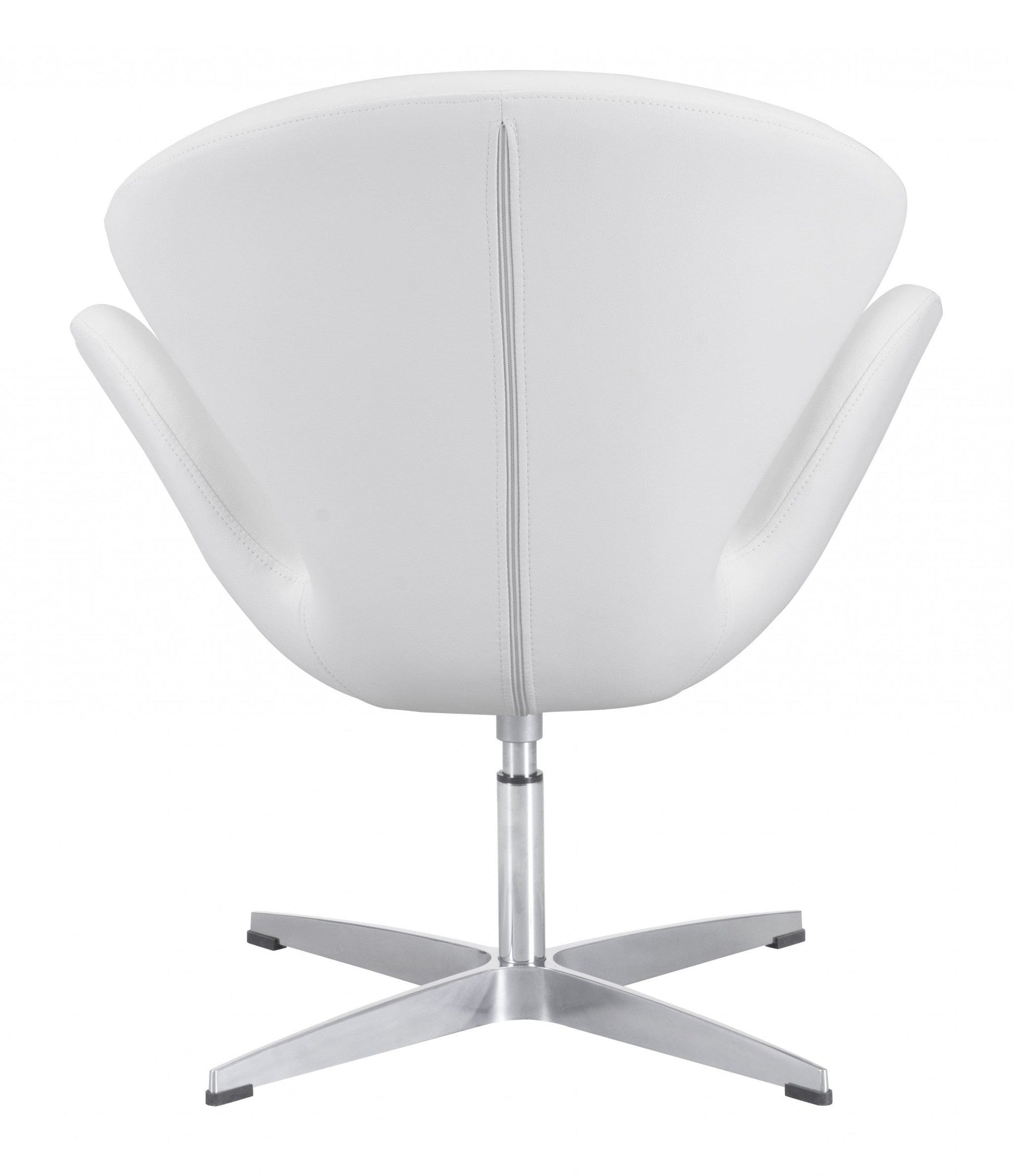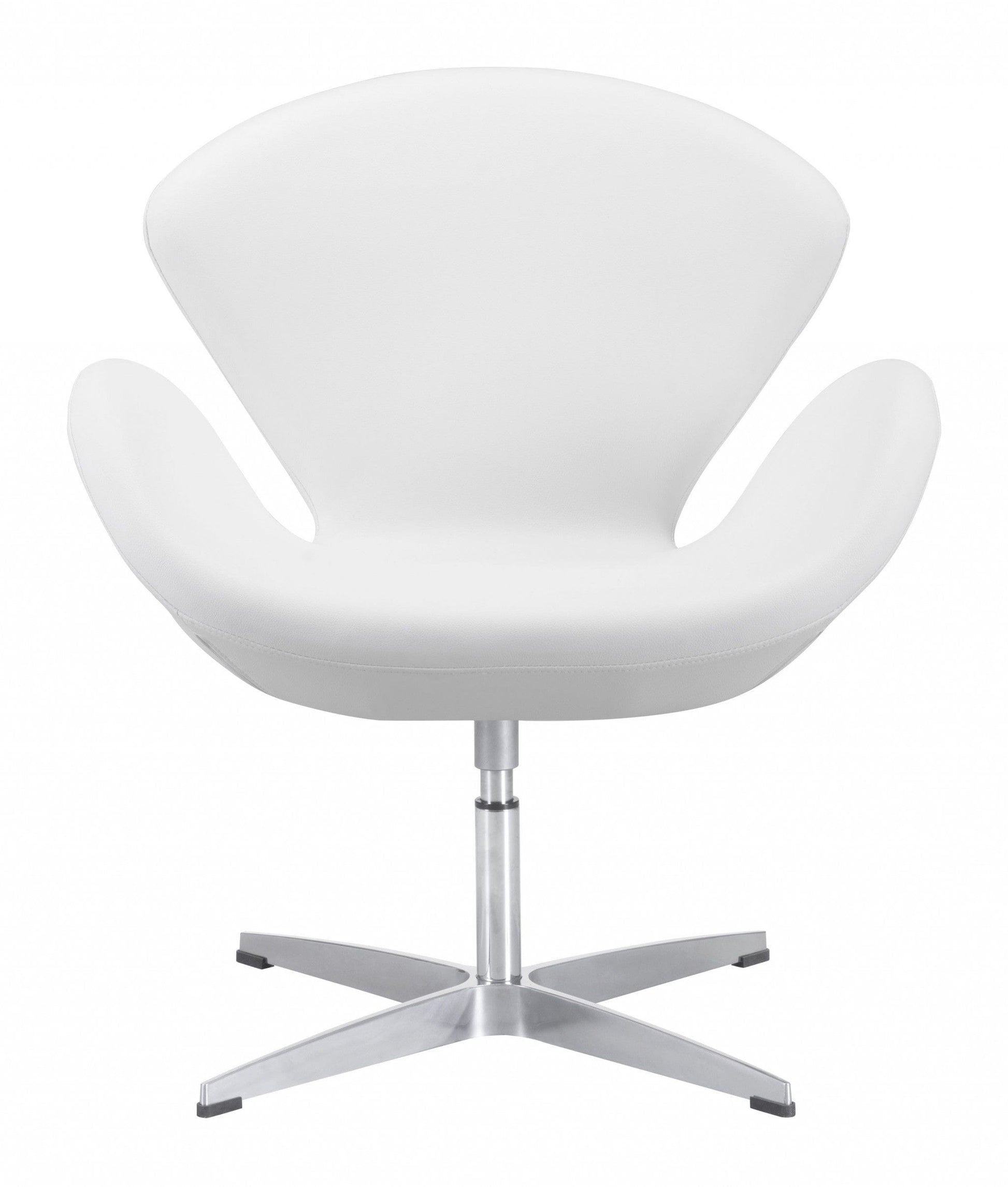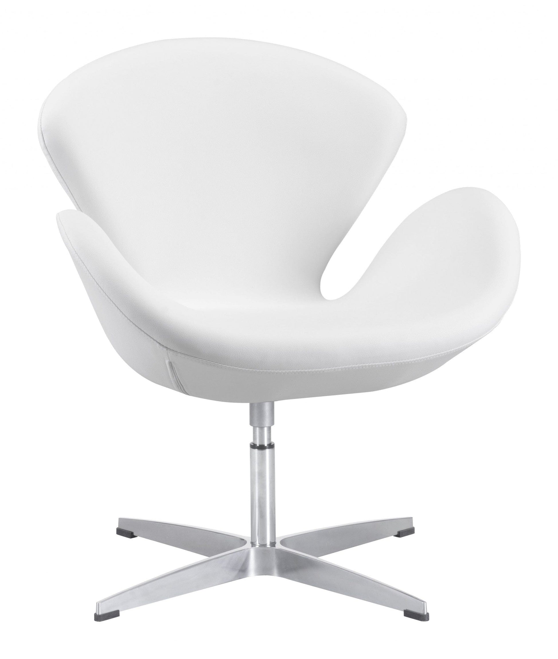 The perfect way to add a pop of neutral design to any seating space in your home this White Scoop Swivel Chair is comfort and style all in one. The base of the chair is made from steel and is colored to a silver finish. The base has a four spoke design with stoppers on either end to help with stability. The central rod that rises up holds the seat in place and allows it to swivel around easily. The scoop seat on top has a deep seat with a tapered back support. The white fabric covering the seat and back works well with the silver base. Use this chair in your home office your library as extra seating or in your actual office space. 30" H x 28" W x 26.8" D