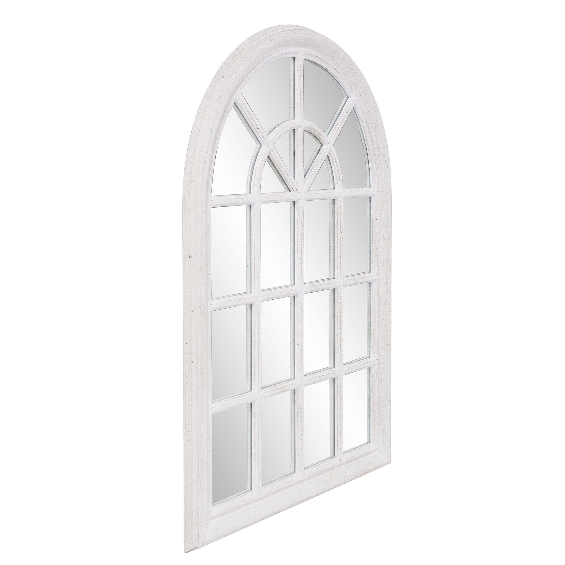 White Washed Mirror With Arched Panel Window Design
