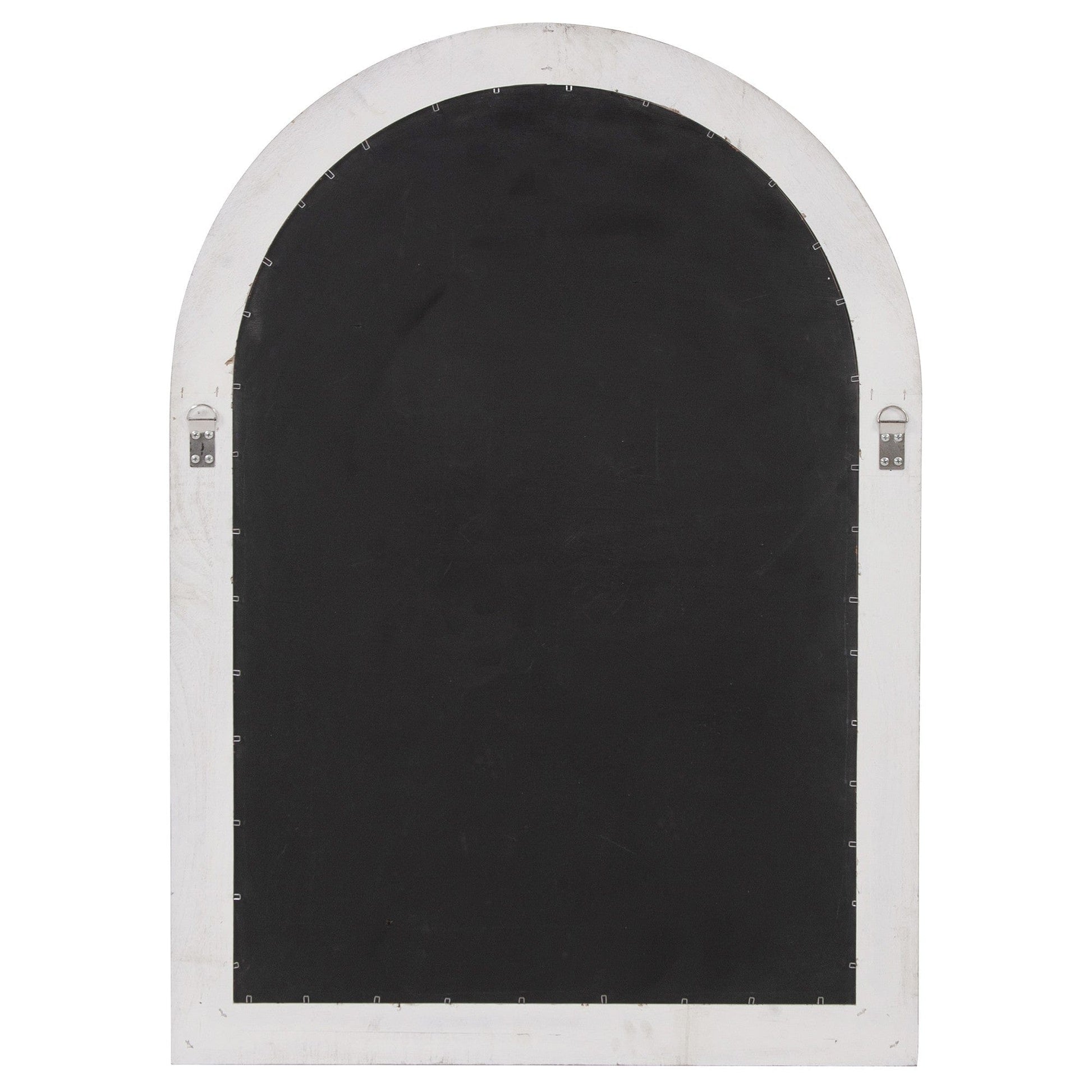 This mirror resembles a beautifully arched paneled window. The wood frame is finished in a classic white wash to perfectly accent your decor. It is a perfect focal point for an entryway, bathroom, bedroom or any room in your home. D-rings are affixed to the back of the mirror so it is ready to hang right out of the box! The mirrored glass on this piece is NOT beveled. This mirror is the perfect finishing touch for a coastal, french country or rustic look.