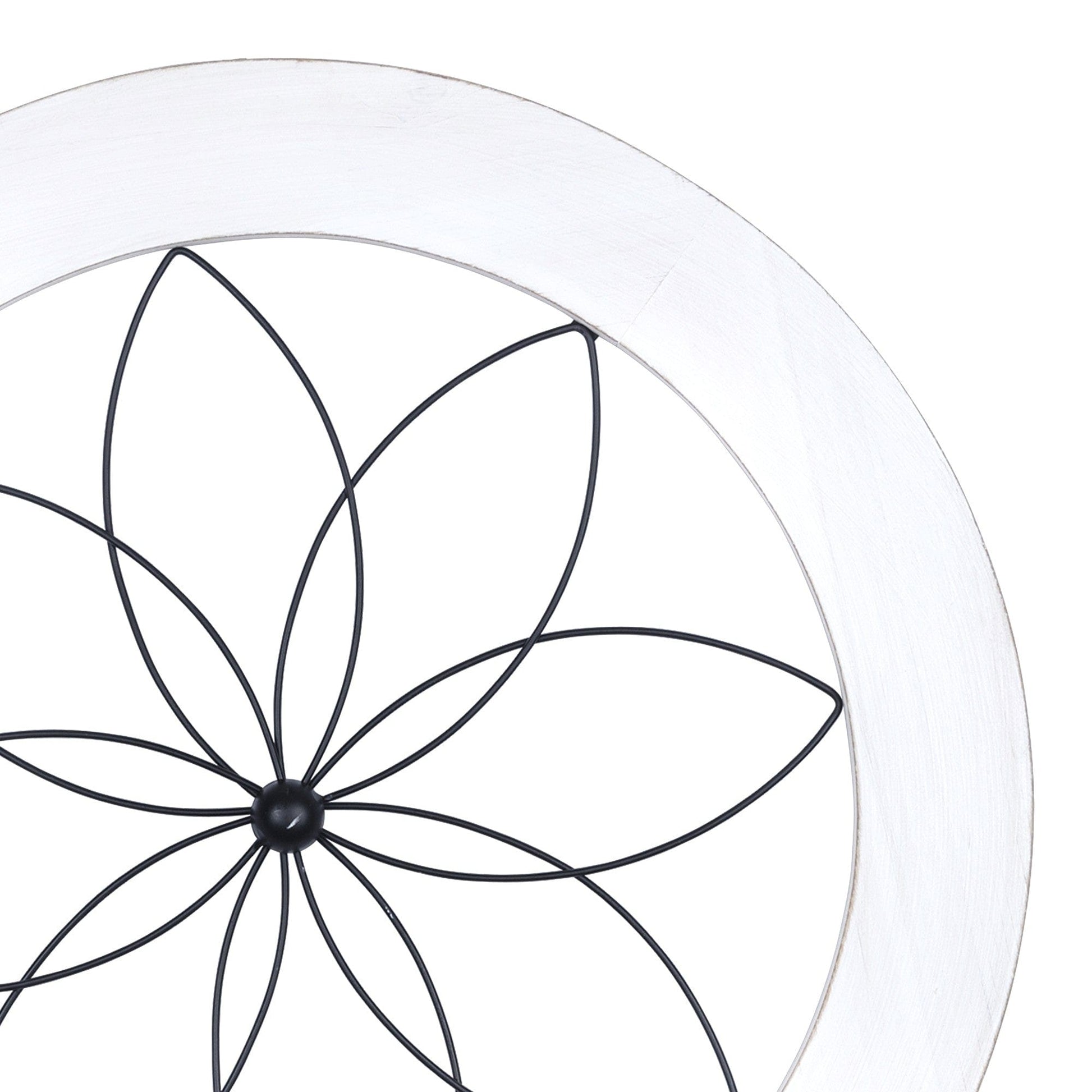 This Wire Flower Framed Wall Decor is the perfect way to add a minimal design element to the walls of your home. The frame on the outside is made from MDF wood while the flower in the center is made from thin metal rods. The outside frame has a white finish on top of it and is in a round shape. The flower in the middle has a black color and has a very minimal and simple line design. The flower has a two-dimensional feel to it which adds depth to the whole piece. You can use this decor piece anywhere in your home without worrying about any colors clashing as it has a very neutral colorway. 20" H x 20" W x 1" D
