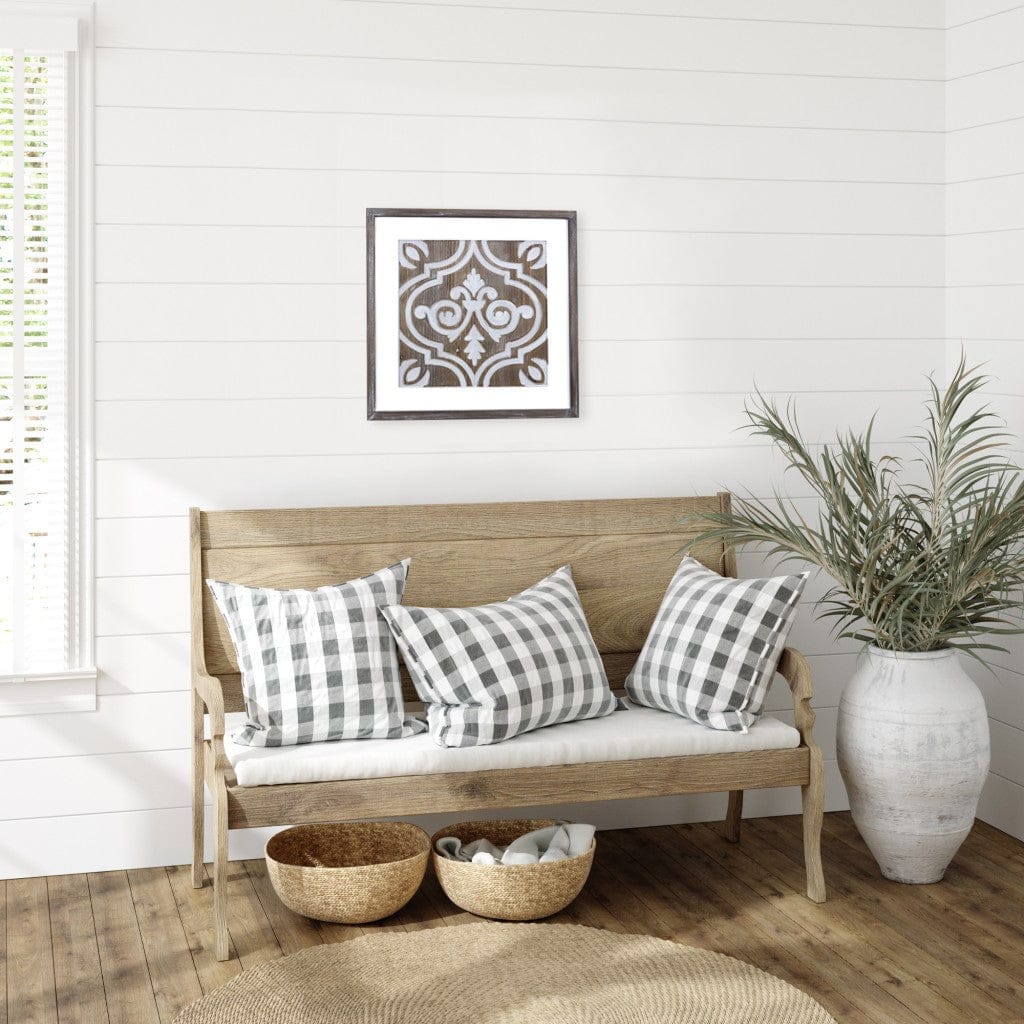 This Wooden Gray and Beige Ethnic Tile Wall Plaque will make the perfect addition to the walls in your home. This piece is made solid wood which makes it sturdy yet light enough to hang securely. The outside border has a dark gray finish which works perfectly with the inner beige border. In the middle of this square decor piece there is wooden panel that has a dark gray background with white detailing on top. The neutral colors this piece mean you can use it anywhere without worrying about any clashing colors. 17" H x 17" W x 1" D