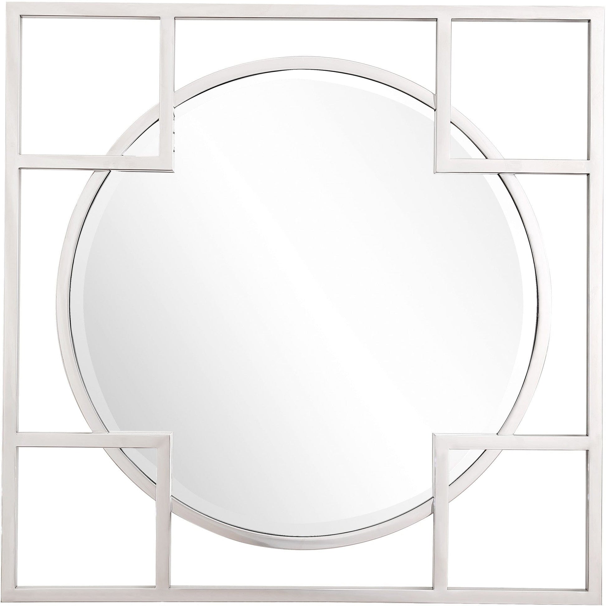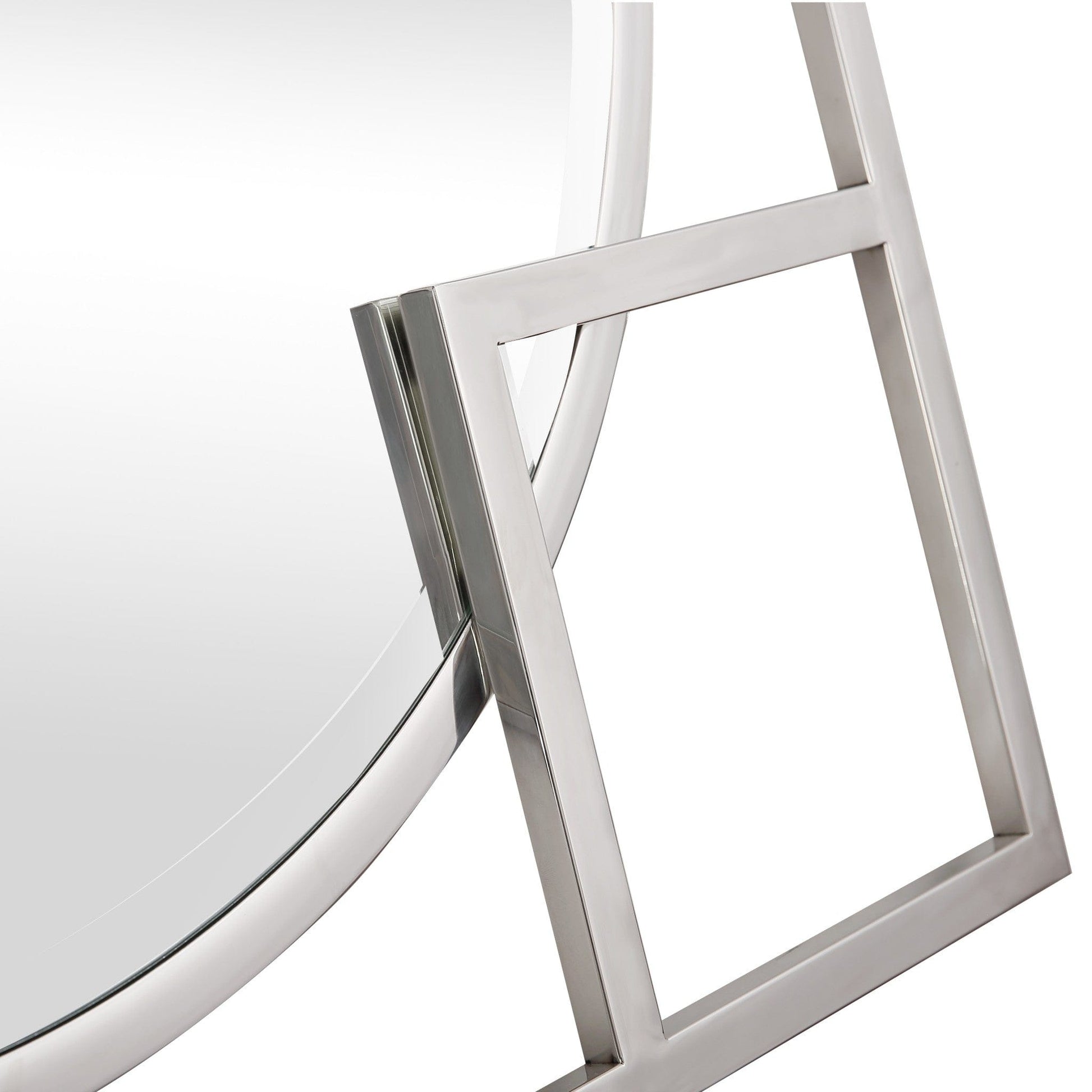 If you want to make a statement with a simple look, the X Shaped Beveled Edge Accent Mirror is perfect for you. The square geometric shapes on the borders overlap the circular beveled mirror to create a unique look that complements your modern or rustic chic interior design. It has a X shaped design that will definitely stand out in your home. This mirror looks stylish on any background! 33" x 33" x 0.5".
