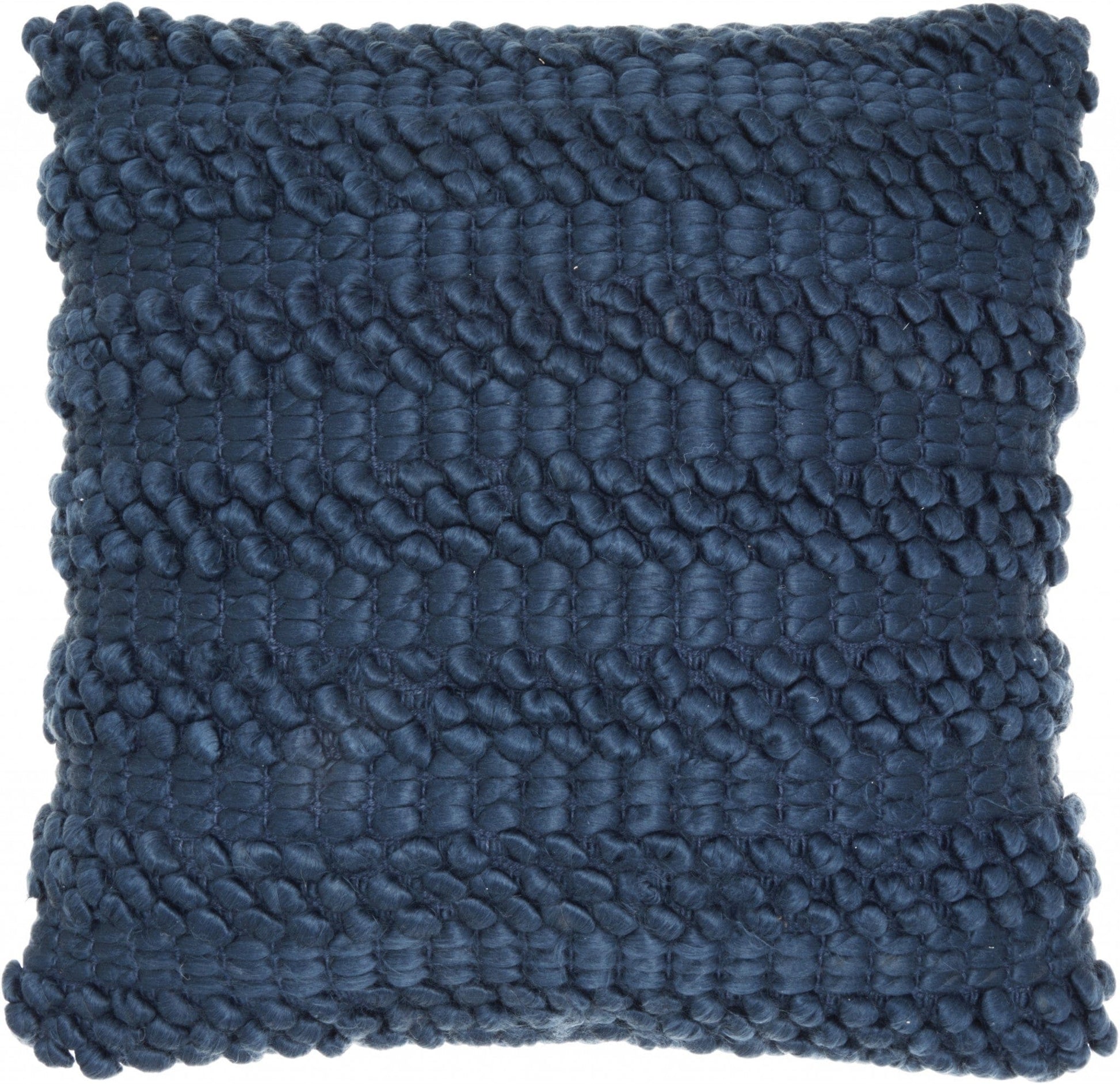 Add a touch of unique design and comfort to any seating space in your home with this XL Dark Blue Pom-Pom Detailed Throw Pillow. This pillow has a large square shape with a hidden zip closure at the back for a seamless look. The cover is covered in a dark blue colored fabric which has a striped design on top of it. There are two designs in the stripes with one stripe with an embroidered pattern and one stripe with a textured small pop-pom pattern. These stripes alternate and give a very textured feel to the pillow. You can use this pillow anywhere in your home and it will work with any existing colors or decor style you already have, You can use this pillow to elevate the look of your bed, your couch, or your favorite chair. 5" H x 20" W x 20" D